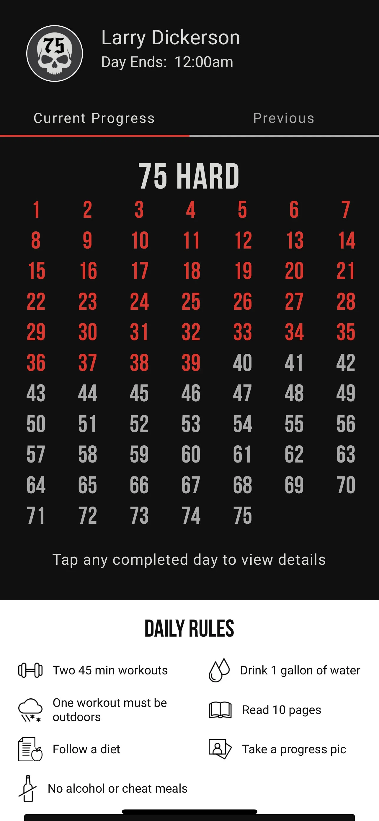 Disclaimer, I have zero affiliation with 75 Hard and I have read a lot of good and negative things about this program and the guy who developed it. This blog is my experience not advice.