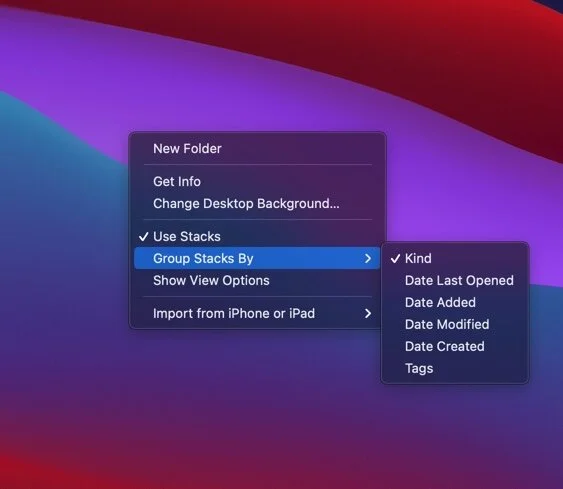 So lets talk about the junk drawer or what we call the Desktop. A lot of people, including me, use the Desktop as a catch all for work in progress or things that need to be done. I like to have what I need to do or what I am working on right in front of me, but that usually leads to me starting something and then getting pulled in another direction, and before you know it my desktop looks crazy. There is a few ways to combat this. I use a Mac, and the OS on Mac has some smart ways of dealing with desktop clutter. You can set up the files in Stacks and then you can choose how the Stacks are grouped either Kind, Date Last Opened, Date Added, Date Modified, Date Created or by Tags…I personally use Kind. Windows also has ways to keep your files organized, but I really like the Stacks for MacOS